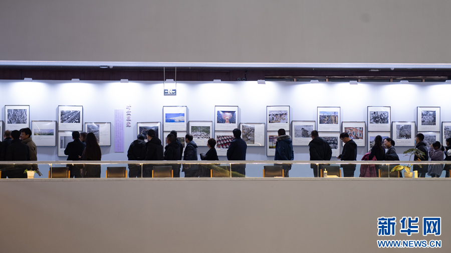 “国社之镜·世纪光影”新闻摄影展暨“镜揽河湟·影耀乐都”主题摄影展举办地海东市图书馆。新华网 潘彬彬 摄